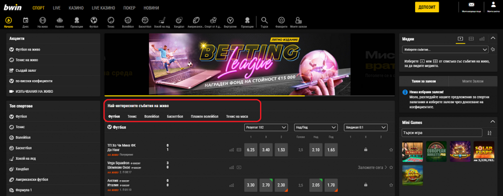 | 🚀 Bwin Инструменти за Залог: | Статистика на живо, Пряко Предаване, Кеш Аут |