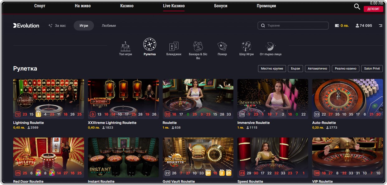 Удобната навигация в bet.bg casino ще ви отведе и до Live Casino игрите на новия бетинг оператор в България. Лобито тук съдържа повече от 300 предложения, сред които най-любимите ваши игри – бакара, покер, рулетки, блекджек, азиатски игри атрактивни шоу игри с професионални крупиета ви очакват с високо качество на картината.