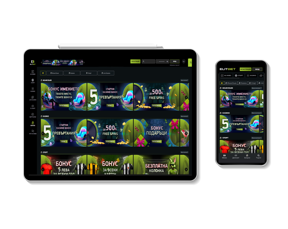| 🤑 Елит Бет Начални Бонуси: | Вземи 100 % За Първи Депозит в Спорт и Казино |