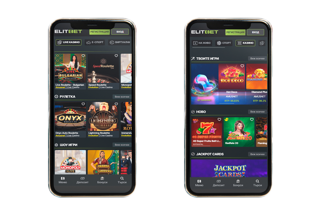 Live Казино – както конкурентите си, и Elitbet mobile предлага игри на живо. През телефона си можете удобно да се „настаните“ на виртуална маса и да опитате да надиграете реалните дилъри в игри като рулетка или блекджек.