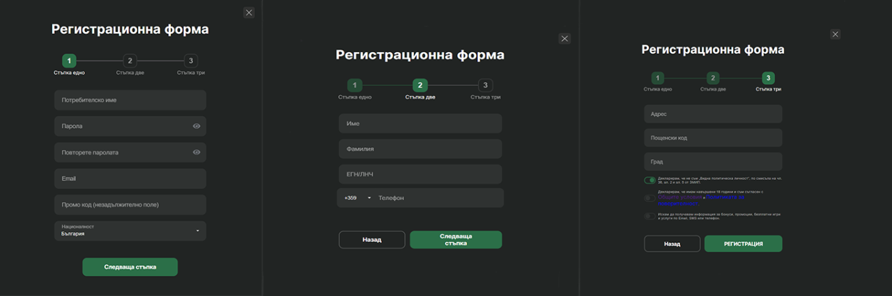 Двете имена трябва да бъдат изписани правилно на кирилица. Не се изисква вписването на презиме, като няма нужда да го добавяте към едно от двете полета. Трябва да дадете активен телефонен номер, като това ще бъде другият основен комуникационен канал на компанията с вас освен електронната поща.