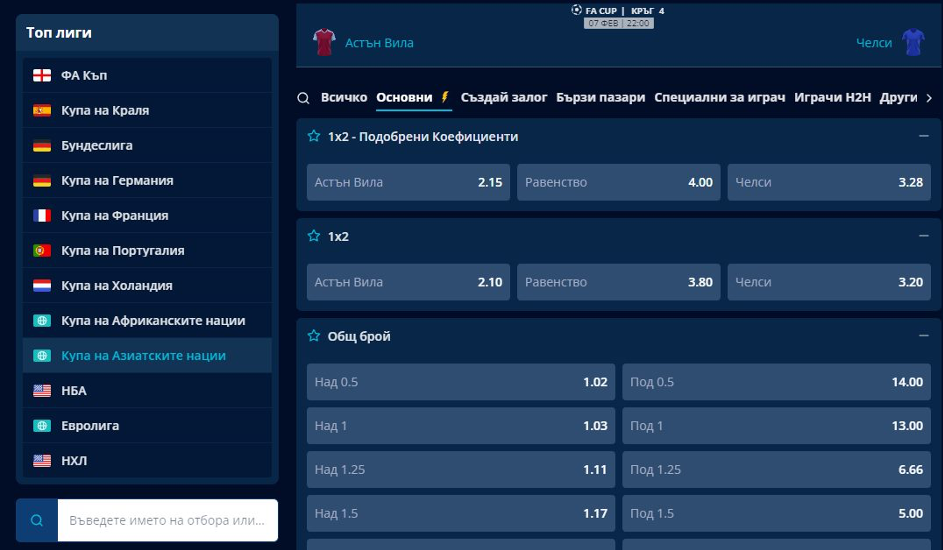 Но нека разгледаме малко по-детайлно инструментите за футболни залози в mrbit.bg и предлаганите пазари: