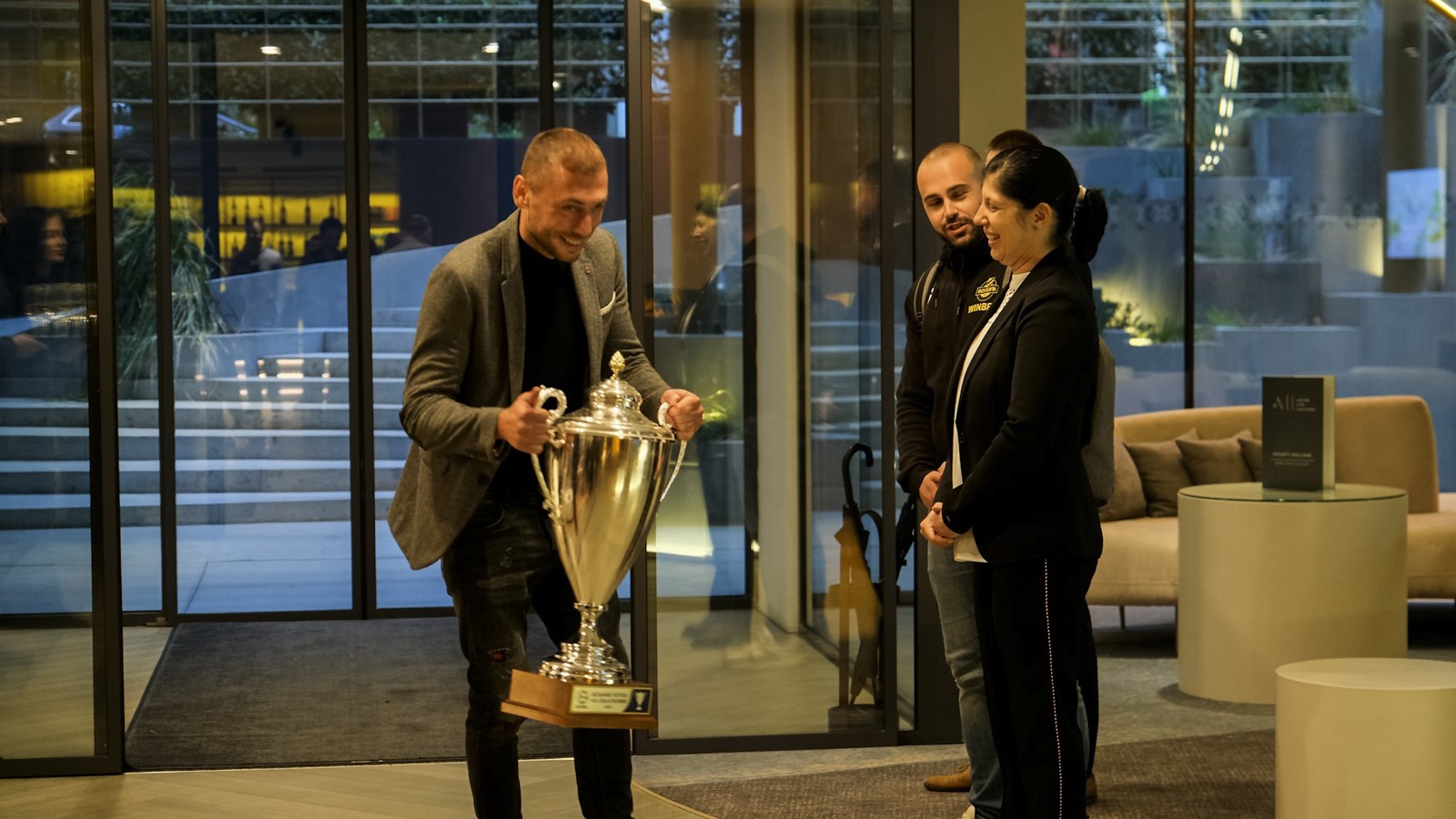 Още с пристигането си шампионите се снимаха със свои почитатели пред луксозния хотел, като не пропуснаха да вдигнат своя ценен трофей за удоволствие на феновете. ФК Ботев Пловдив може да се похвали с една от най-лоялните и отдадени агитки в българския футбол! Благодарение именно на огромната подкрепа на феновете през годините отборът се стреми да предлага все по-качествен и атрактивен футбол. Тази година тези усилия бяха възнаградени и най-после Купата на България е в ръцете на героите на ФК Ботев Пловдив.