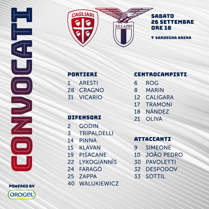 В групата на Каляри за двубоя срещу Лацио попадна и новото попълнение Диего Годин.