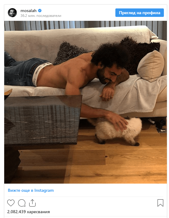 Нападателят на Ливърпул Мо Салах показа пухкавия си домашен любимец.