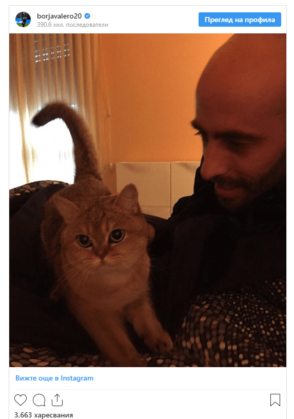 Полузащитникът на Интер Борха Валеро също е фен на котките.