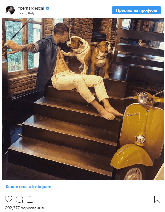 Спайк и Уенди са сладките домашни любимци на нападателя на Ювентус Федерико Бернардески. Гледат го очите – явно са много послушни. И обожават да се гушкат.