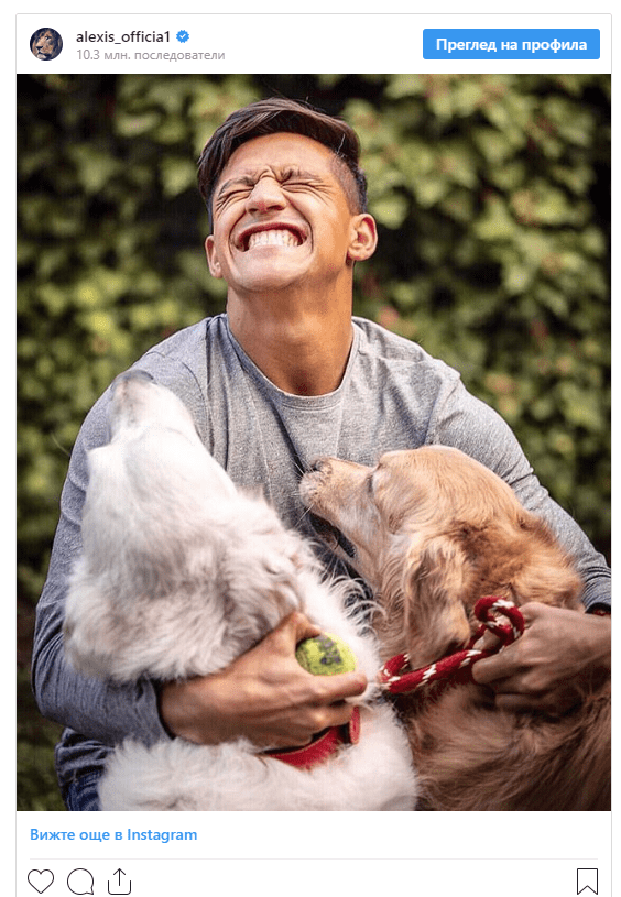 Нападателят на Интер Алексис Санчес сподели снимка, на която се вижда, че е в разгорещена битка със своите супер кучета.