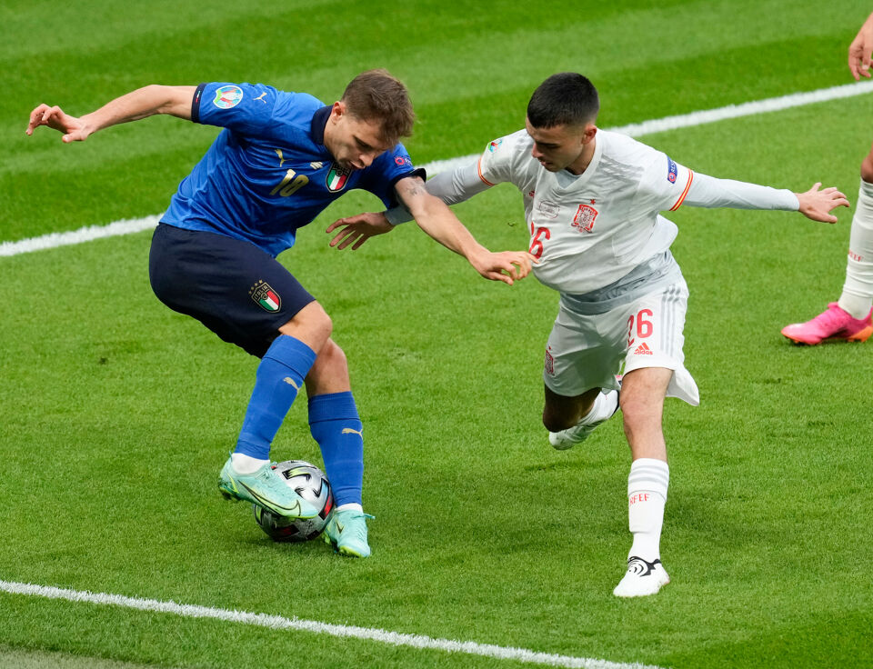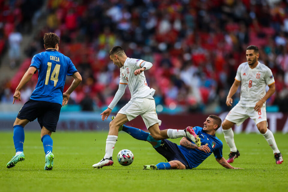 Брилянтен гол на Енрико Киеза четвърт час след началото на второто полувреме даде аванс на Италия в полуфиналния сблъсък на Евро 2020 с Испания, но яростно критикуваният Алваро Мората върна Ла фурия в играта със също толкова изящно попадение десет минути преди края и прати срещата в продължения.