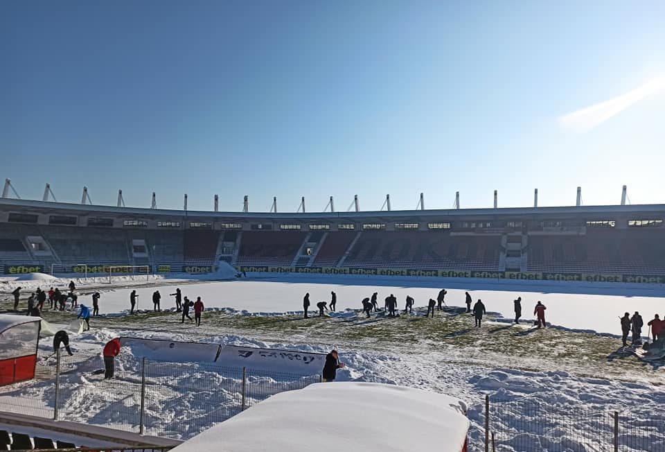 В същото време солиден брой привърженици на Локомотив се включиха в разчистването на терена от натрупалия сняг, демонстрирайки за пореден път лоялността към любимия клуб.
