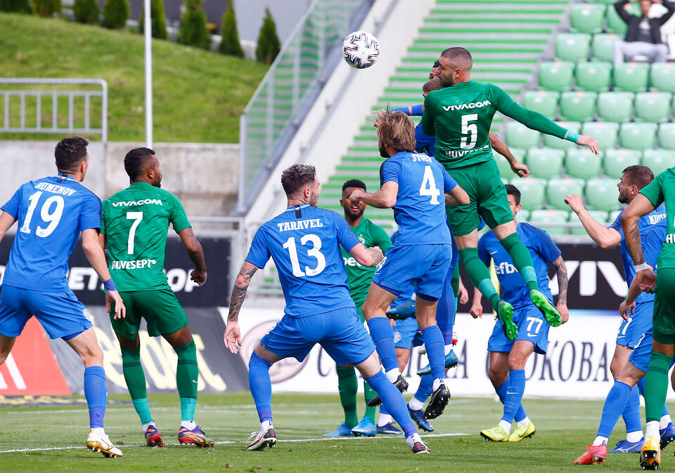 В 37-та минута обаче, гостите поведоха в резултата. Светослав Дяков сгреши сериозно и подари топката на Иван Тилев. Той напредна добре и с много хитър пас изведе Тонислав Йорданов, който не сгреши сам срещу Кахлина.