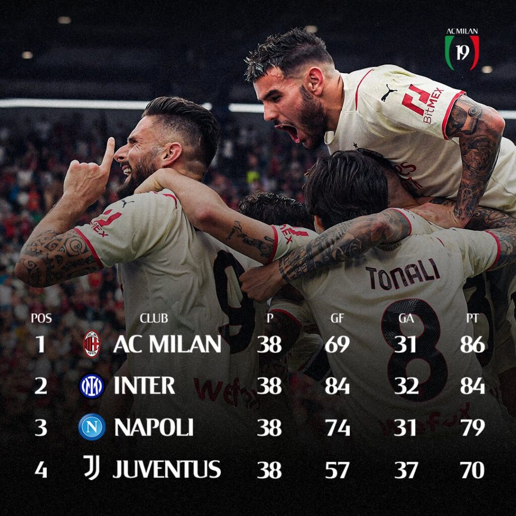 Ce l'abbiamo fatta! Siamo Campioni 🏆❤️🖤#SassuoloMilan #AlwaysWithYou #SempreMilan@Acqua_Lete pic.twitter.com/Ok2f3dBAiV