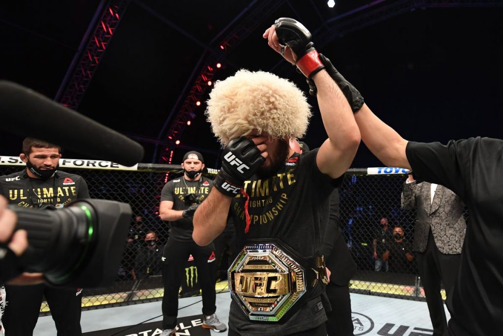 Дагестанският боец посвети победата на баща си Абдулманап, който почина тази година, след като се зарази от коронавируса.