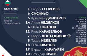 БЪЛГАРИЯ: Георги Георгиев, Сисиньо, Кристиан Димитров, Антон Недялков, Иван Горанов, Георги Костадинов-капитан, Янис Карабельов, Бирсент Карагерен, Галин Иванов, Тодор Неделев, Божидар Краев