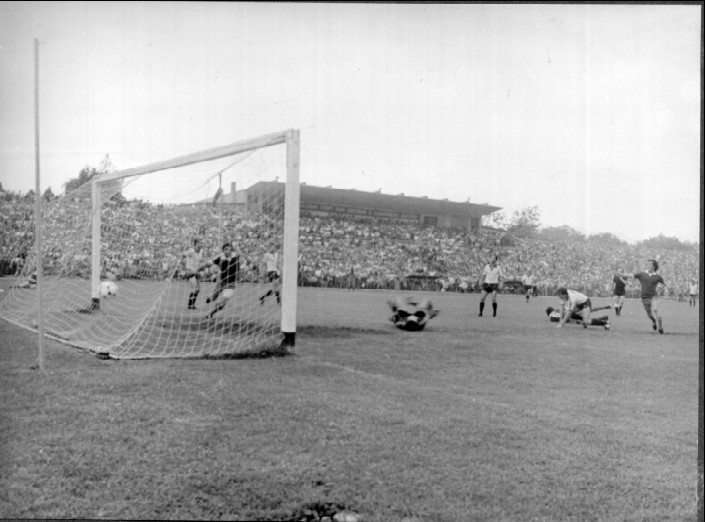 Първата среща се играе в Дупница и завършва без голове – 0:0. Реваншът на препълнения стадион “Севтополис” (тогава носещ името “Цвятко Радойнов”) е изпълнен с драматизъм, но в крайна сметка домакините, предвождани от легендарния десен бранител на ЦСКА и националния тим – Иван Зафиров, печелят с 2:1, и влизат за първи път в клубната си история в дивизията на майсторите.