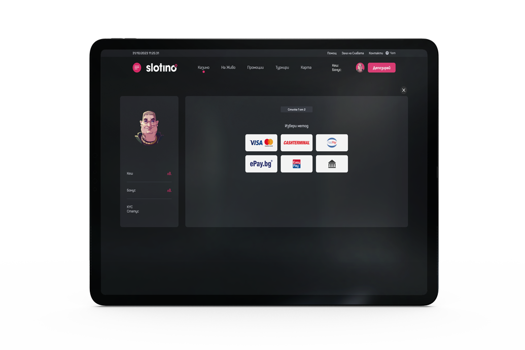 С вече веднъж направен избор остава да се заложи на някой от участващите решения за плащания, които за Slotino са банкови карти и банков превод, FastPay, Cashterminal, ePay и EasyPay. С всеки от тях се действа по съответен начин, като трябва да се съобразят лимитите на еднократния депозит, зададени предварително.