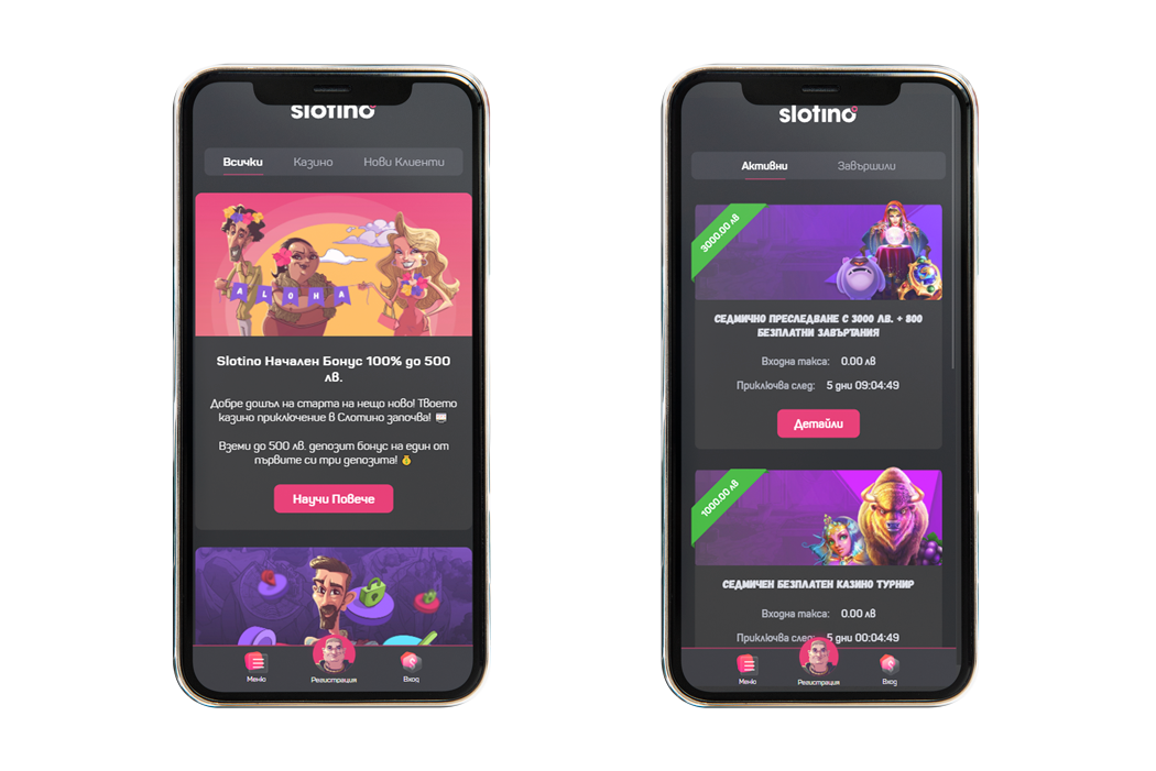 Голямото предимство на мобилните залози са преди всичко останало в бързината, комфорта и лекотата, с които се случват. Тези в Слотино казино гарантират същото, а това лесно може да се провери с логване за вход в сметката и насочване към едно или друго от стотиците варианти за игра, заредени там.